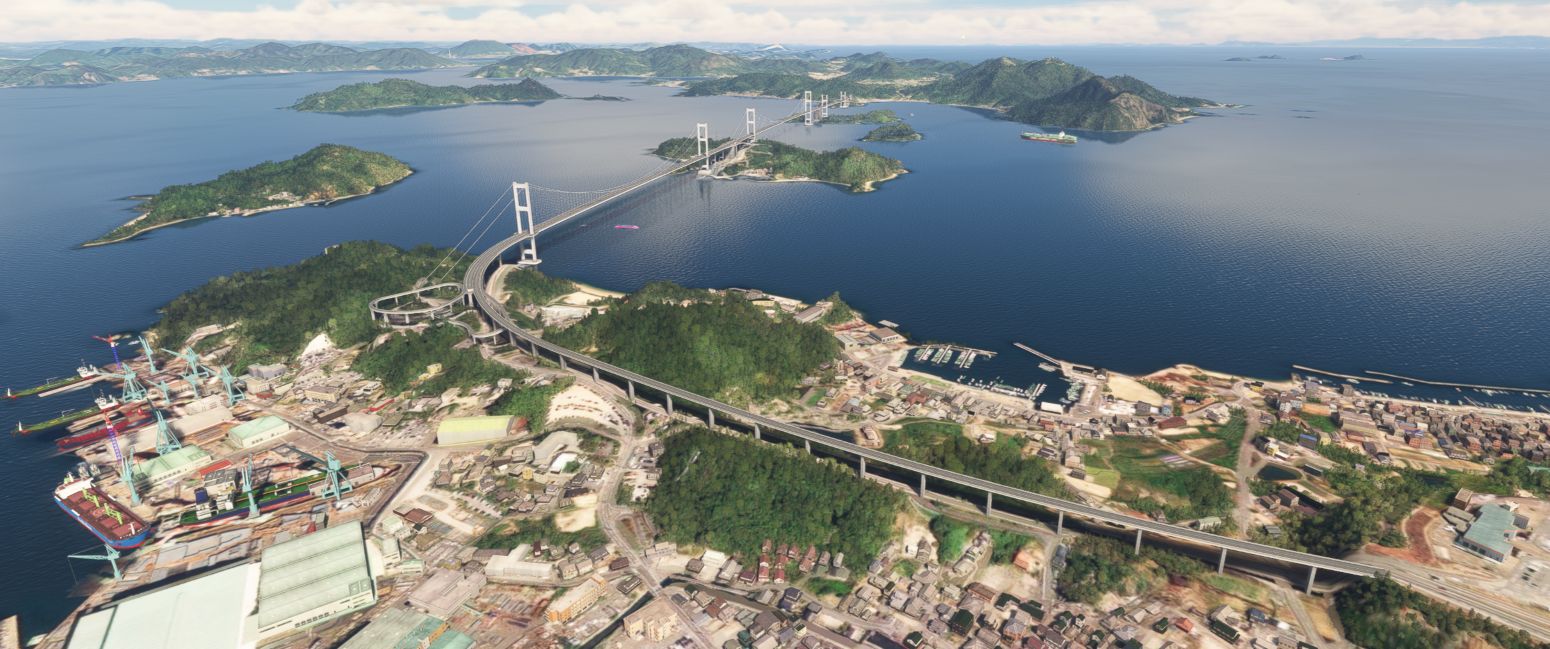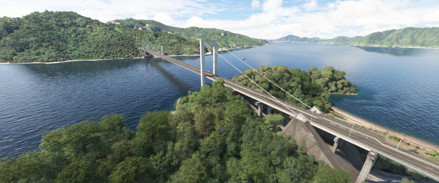 ochiさんの紹介いただいた手法で来島海峡大橋の重複は解消して問題なくGAOCHANさん製作の大橋が表示されるのですが、WU20でハンドメイドされた来栖海峡大橋も思いのほか「よく出来ている」ので、こちらを表示させるシーナリーも暫定的に公開いたします。