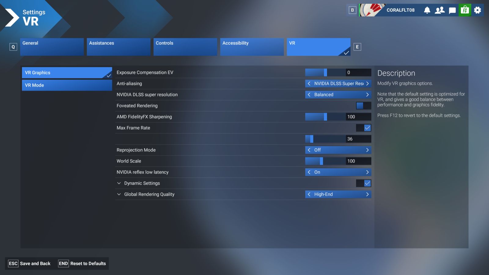 その後MSFSの2024と2020の両方でVRをテストしてみました。すると… パフォーマンス上がってますね。どういう点かというとDLSSの設定にした時に一番スムーズな動きをするようになりました。 以前はVR環境下ではDLSSにするとスタッターが発生。かつ時間が経つほど不安定さも増してくるのでTAAの設定にして動かしていたのですが、今回はDLSSの方が動きが滑らかでしかも安定しています。 これは2020でも2024でも同様で2024の方がより滑らかな動きのように思えました。 思うにMeta quest側で最近のマルチフレーム生成に最適化する修正が入ったのではないかと思います。(公式には何もないですが…) ただし3080では最新のDLSS4.5の恩恵にはあずかれないのでマルチフレームによる文字の滲みが発生して計器の文字が若干見にくくなりました。 ただそれでも滑らかな動きのメリットの方が優っていますね。