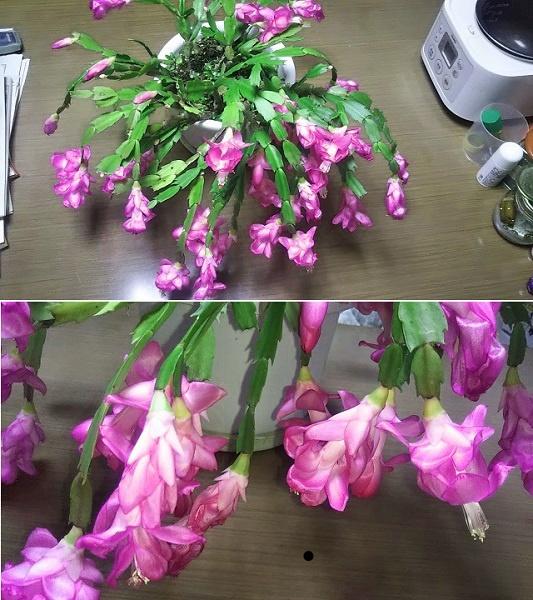 1か月ほど前から咲き始めていたシャコ葉サボテンは、全部の花が咲き終わりました。成長が遅れていた「後発組」の蕾4〜5個は、咲かないまま落ちてしまいましたので、これで今年の開花は終わりの様です。