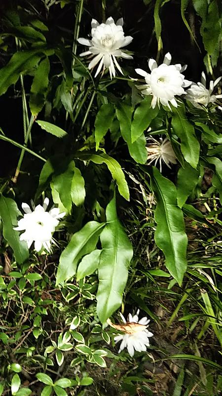 月下美人が一気に8輪咲きました! 今年4回目の開花です。