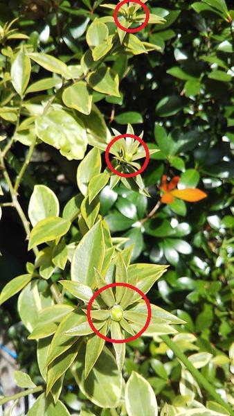 先日の花は咲くまで気が付かなかったので、蕾がどんな形なのか判らないのですが、普通の新芽とは明らかに違っています。