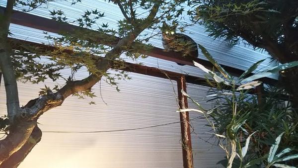 昨日直した紅葉ランプのすぐ近くで、猫が塀の上に居ました。