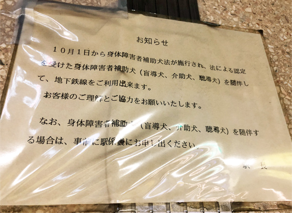 貼り紙が貼られていてもアイメイト(盲導犬)ユーザーには