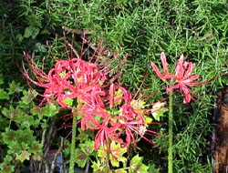 芸術の秋、栃木市主催の「蔵の街」音楽祭へ。お目当ては、吉沢実さんが中心のリコーダーのコンサート。蔵の街を少し散策し、栃木文化会館へ。充実した良いホールです。アルトが4本、他にチェロ・チェンバロ・リュート・ファゴット…豪華な編成でシックハルトの協奏曲。心地よくて、隣の夫は、ZZZ…。 最後に、童話「100万回生きた猫」のスライドと共に小学生に(60人程)による朗読や演奏。 エントランスホールでのリレーコンサート等、市民の層の深さに感心しました。古河では、考えられない! 忙しさに追われているうちに、もう秋の気配…カモミールの庭の彼岸花です。