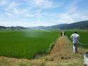 今日から稲の防除を始めました。これからお盆頃にかけてイネツトムシという稲の害虫が遅植えの田んぼを中心に発生します。このまま放っておくと葉っぱが全部その虫に食べられてしまう恐れがあることから、毎年予防で防除をしています。今日も炎天下の中でしたが無事に作業が終わりました。よかったです。