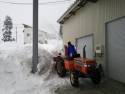 今日、玄米貯蔵庫から玄米を運び出す作業があったので、シャッター前に積もった雪を片付けました。ここのとこと雪が落ち着いているので、生活するには少し楽です。こんな調子でこの冬を乗り切れればいいなぁ〜。