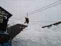 今日、じじちゃんが雪下ろしをしました。まずは精米所の裏にある平屋建ての農機具庫からです。そして、午後は家の前に置いてある物置貨車の雪下ろしをしました。地面にはもともと積もっている雪がるので、その雪を下ろしたら貨車の屋根とほぼ同じ高さになってしまいました。いよいよ雪のやり場がなくたってきた…。
