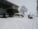 今日、初雪が積もりました。昨夜から午前中までで一気に40センチを超えました。ちょうど、トラクター除雪機が修理で入院しているので、小型除雪機の登場させました。こんなときの為に持っていてよかった〜。さっそく、スタッフの栗岩君が作業してくれました。駐車場もすっかりきれいになりました。