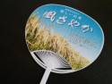 今日、じじちゃんがお米の会議に行ってうちわをもらってきました。「風さやか」うちわです。長野県が開発した新しいお米の品種のPR用グッズ。風さやかは、我が家でも数年前から試験栽培していますが、とても食味の良いお米です。早く全国デビューしてほしいな〜