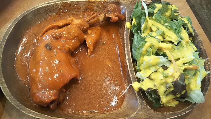 今日はまだ注文した事のなかった「タンドリーチキンセット」です。予想通り美味しいです。そしてスタッフ賄い用の、チキンのカレー煮込みの小鉢とデザート、更に持ち帰り用にスープまで、てんこ盛りでサービスしてくれました。
