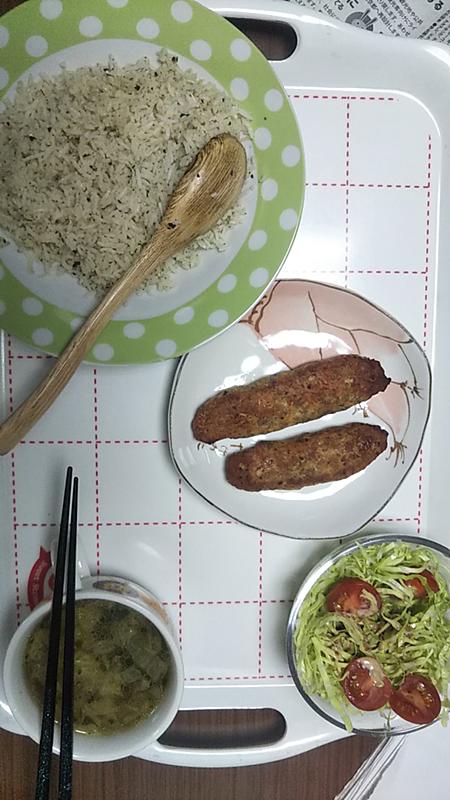 イスラム料理なので、羊肉なのでしょうけれど、羊肉の挽肉はそう簡単には手に入りませんので、鶏挽肉を使い、それに色々なスパイスを入れて捏ね、オーブントースターで焼いてみました。