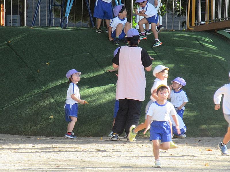 秋晴れの下、子どもたちは真っ赤な木の実やどんぐり拾いなど楽しむ姿が見られ、運動会も体験してか益々、友だちのかかわりが深まり遊びが広がってきているようで、これからがまたどんな遊びや姿を見せてくれるのか楽しみになります。。