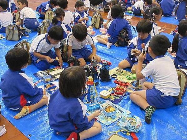 今日は雨のためお芋ほり2日目のクラスは24日に延期になりました。残念でしたが、お昼に体育館で縦割りでお弁当を一緒に食べました。2日目のクラス年長さんと年少さんで仲よしでお弁当、お母さんお弁当ありがとうございました。おいしそうに食べていました。24日お天気になあれ!!