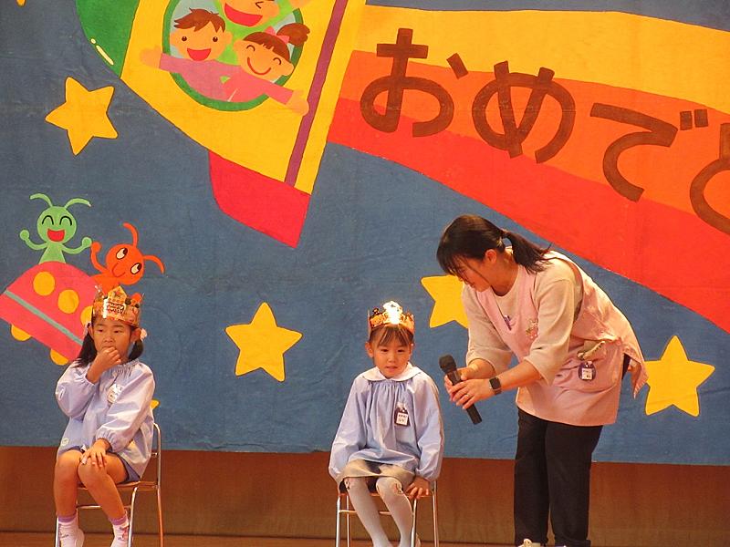 11月生まれの誕生会を行いました。インフルエンザの流行で急遽、学年別で行うこととなりました。ご来園の保護者の皆様、急な時間変更にもかかわらず、ご協力ありがとうございました。