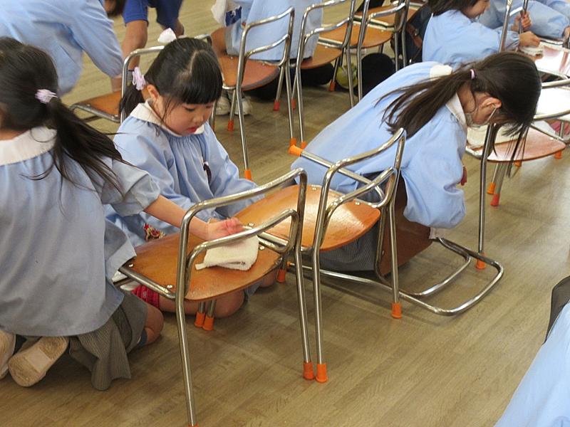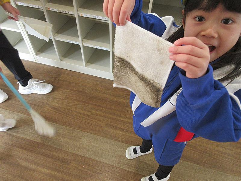 今日は2学期終業式を前にしてお掃除を年中長組が行いました。雑巾でせっせと雑巾をかけて拭き掃除、長い廊下もスーッと楽しそうにお掃除です。未就園児教室のお友だちや満3歳児つぼみ組の下駄箱まできれいにしてくれて・・・すっきりきれいになりました。ありがとう。最近は掃除の仕方も変わってきて、雑巾がけもなかなか体験ができなくなっているかもしれません。雑巾を絞ることもちょっと難しいですね。