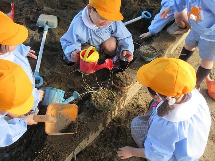 このところ、日中は小春日和のぽかぽか陽気が続いています。園庭の木々もすっかり冬支度したのですが、隙間から日差しが差し込み、子どもたちの外遊びは絶好調!! 寒い冬到来はまだ先のようですね。