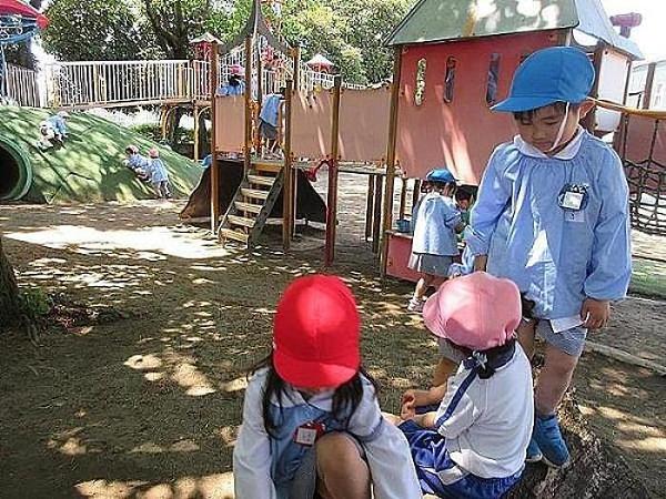 今日はクラス懇談会がありました。園庭で年中長さんは外遊びをしましたが、すっかり新緑になった桜の木の下で、心地よく遊びを楽しんいました。