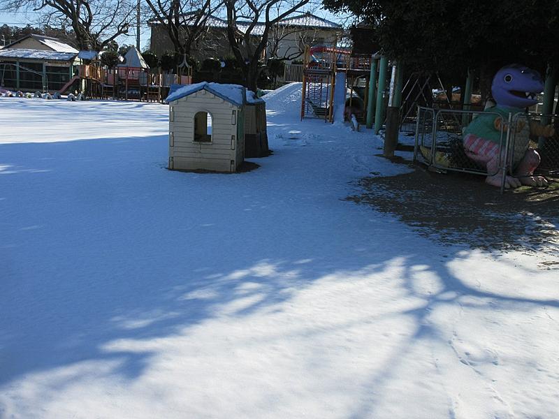 昨日の雪で、今朝の園庭は雪景色に・・・。今年2度目の雪ですね。寒さも厳しく外の水道につららができていました。春の便りが少し遠のいたかな?